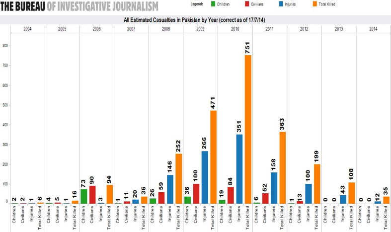 The number of civilian deaths may also be deflated because of how the government defines civilians. For example, if you are a young man standing near a suspected terrorist, you are considered a legitimate target and thus not considered in the civilian casualty report.