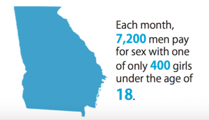 As much as human and sex trafficking are global problems, this is also a local issue. Georgia, particularly Atlanta, is one of the biggest hubs for sex trafficking in the United States: every month in Georgia, nearly 7,200 men pay for sex with girls under the age of 18. That is a striking, but incomplete statistic. The number of underage girls sold for sex in Georgia each month is about 400 – an alarming indicator of how many of these girls are repeat victims. Additionally, only 10 percent of these men know they are purchasing sex with minors, which speaks to the lack of age transparency in the state’s prostitution industry.
